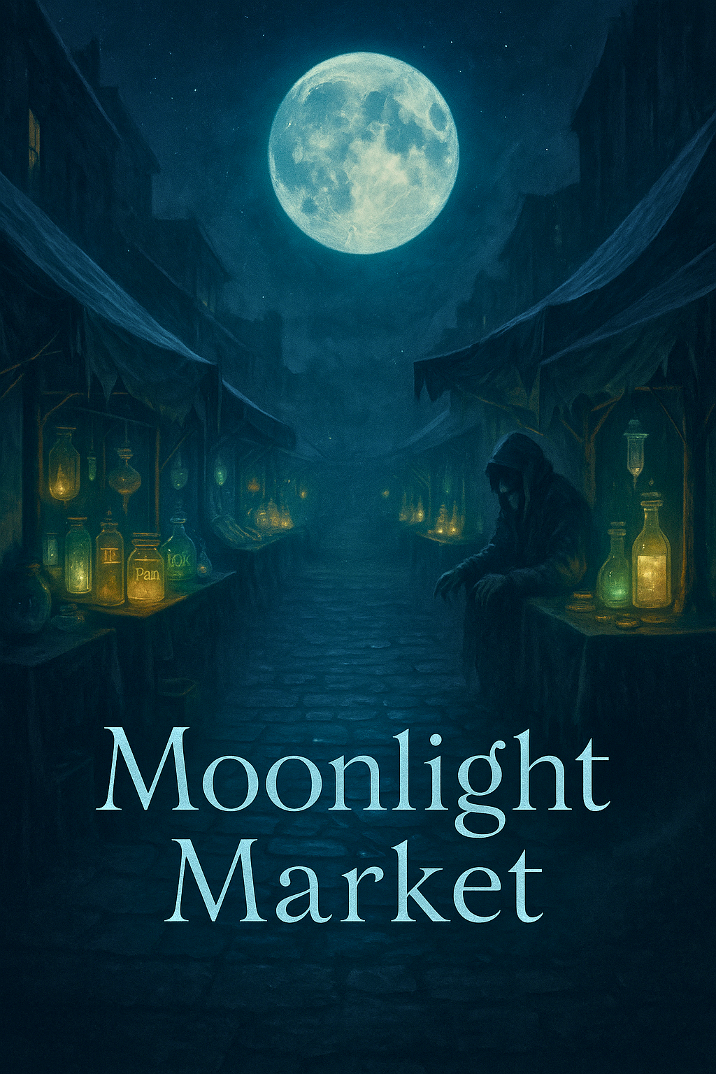 She never thought she’d find it. Yet here it was, stretching endlessly before her eyes. Stalls shimmered in the dark, selling bottled starlight, stolen dreams, and vials of laughter. The air hummed with magic.